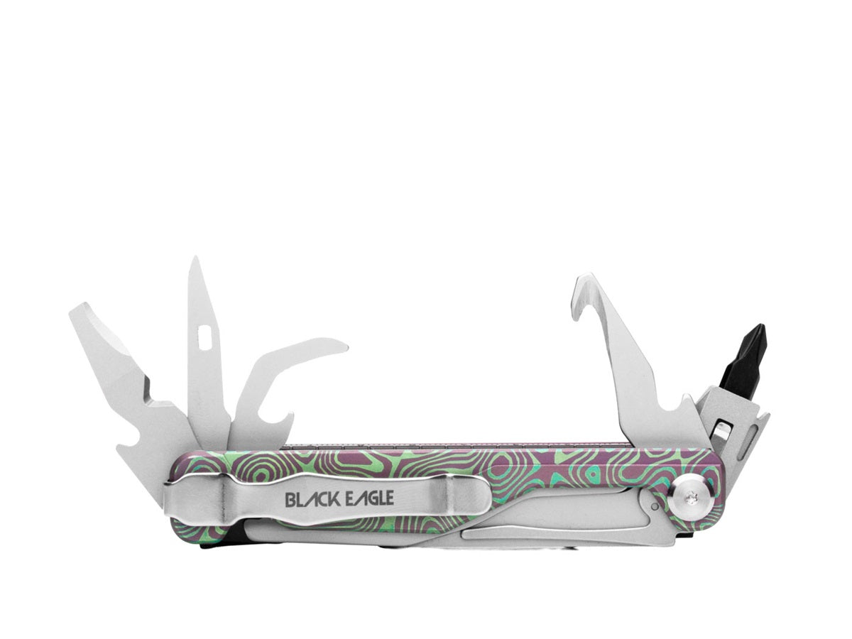 De Black Eagle Teton Multiknife is het ultieme mes voor wie geen compromis wil sluiten tussen functionaliteit en duurzaamheid. De schalen zijn vervaardigd uit hoogwaardig titanium, wat zorgt voor een uitzonderlijk sterke en lichte behuizing die bestand is tegen de zwaarste omstandigheden. Geïnspireerd door het ruige en indrukwekkende Grand Teton National Park, combineert de Teton kracht met verfijning. Grand Teton National Park is bekend om zijn imposante bergpieken, kristalheldere meren en ongerepte wildernis die uitnodigt tot avontuur en ontdekking.